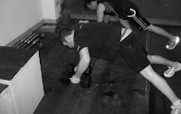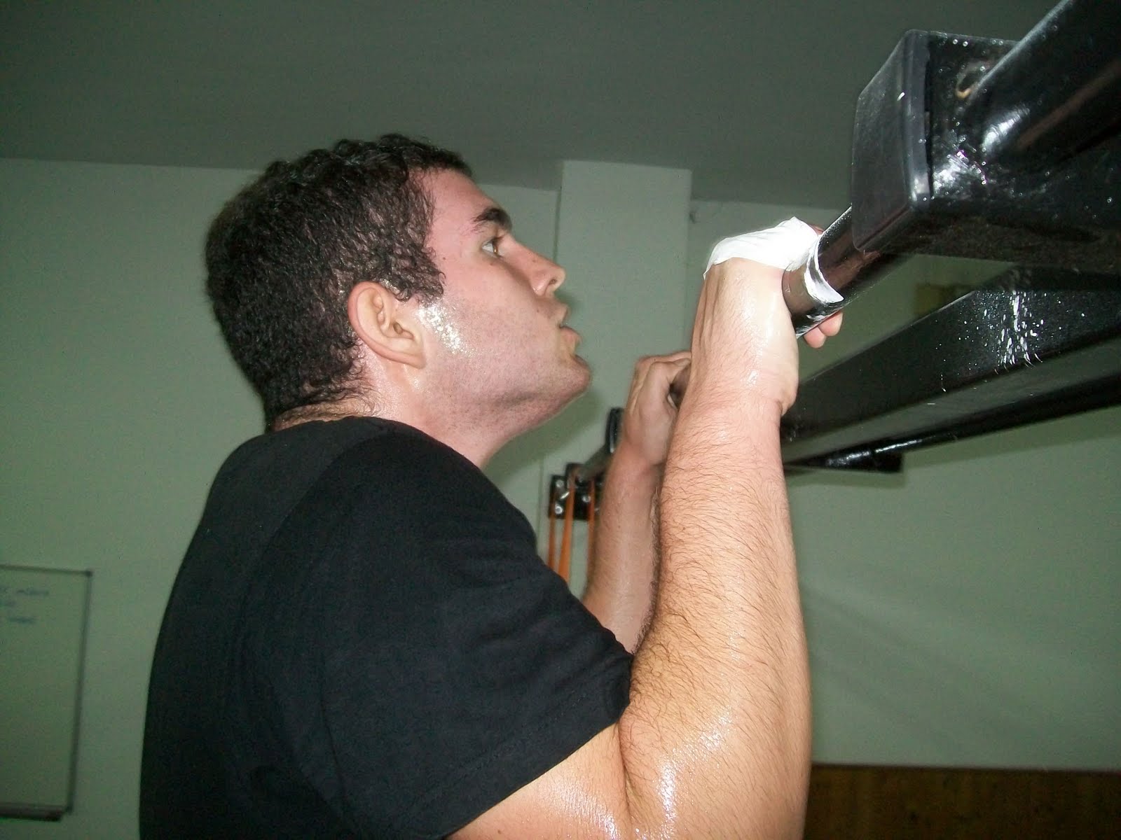 -Dominadas barbilla, fondos contactando (mancha de sudor en el suelo), flexiones en banco o neumático.