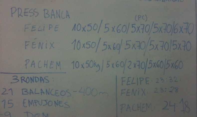 Press de banca 5x70 (aumentando progresivamente el peso)
