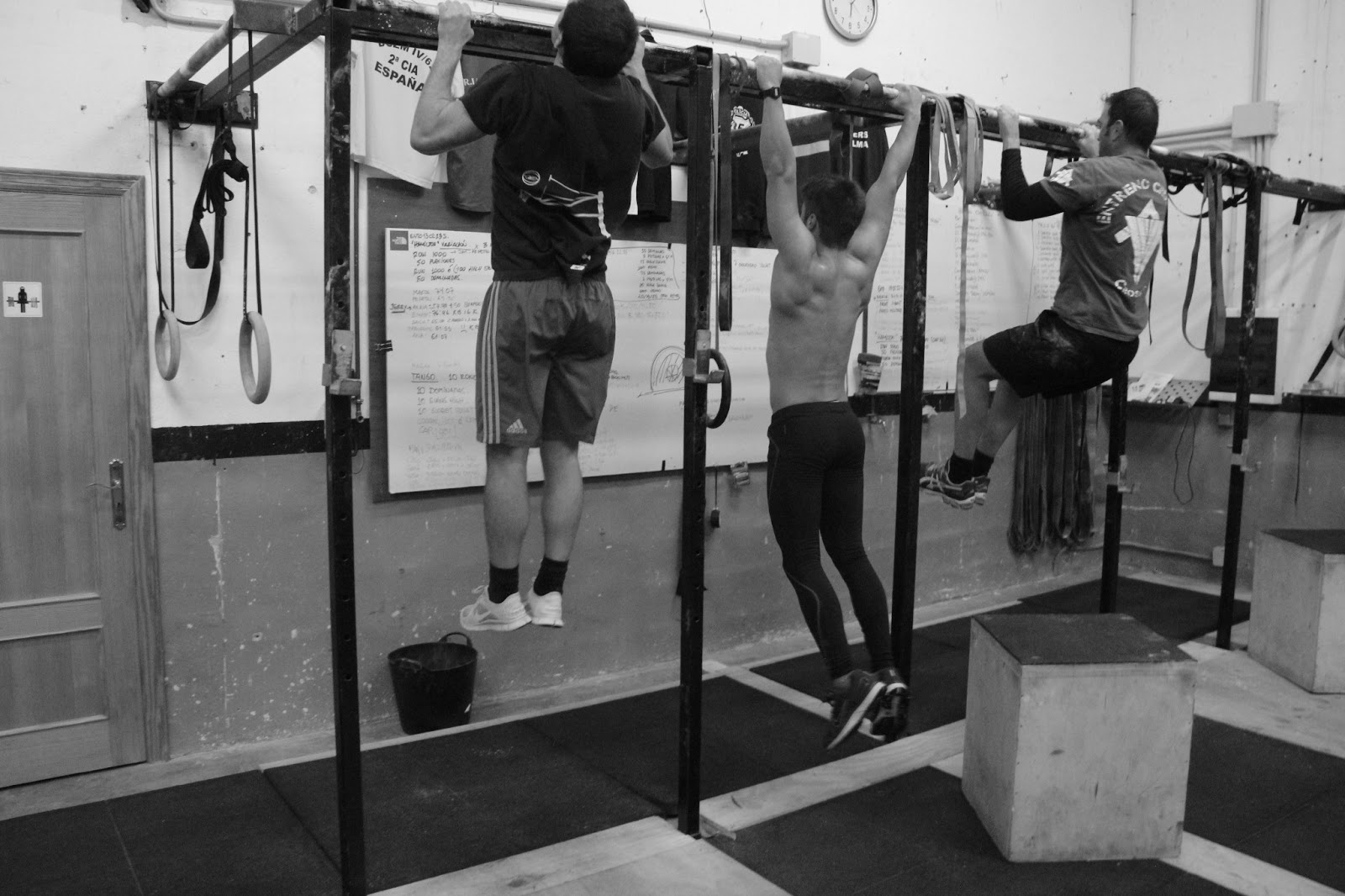 "Los intervalos Tabata (20 segundos de trabajo seguidos de 10 segundos de recuperación, repetido 8 veces) se aplican a sentadillas, remo, dominadas, abdominales y fondos con un minuto para rotar entre ejercicios. Cada ejercicio se puntúa con el número menor de reps realizadas entre cada uno de los 8 intervalos (calorías en el remo). El resultado del entreno es la suma total de las repeticiones menores (calorías en el remo) realizadas en cada uno de los ejercicios. El orden habitual suele ser sentadillas, fondos, abdominales, dominadas. Aunque también empleamos la secuencia sentadillas, dominadas, fondos, abdominales y añadimos el remo al final.